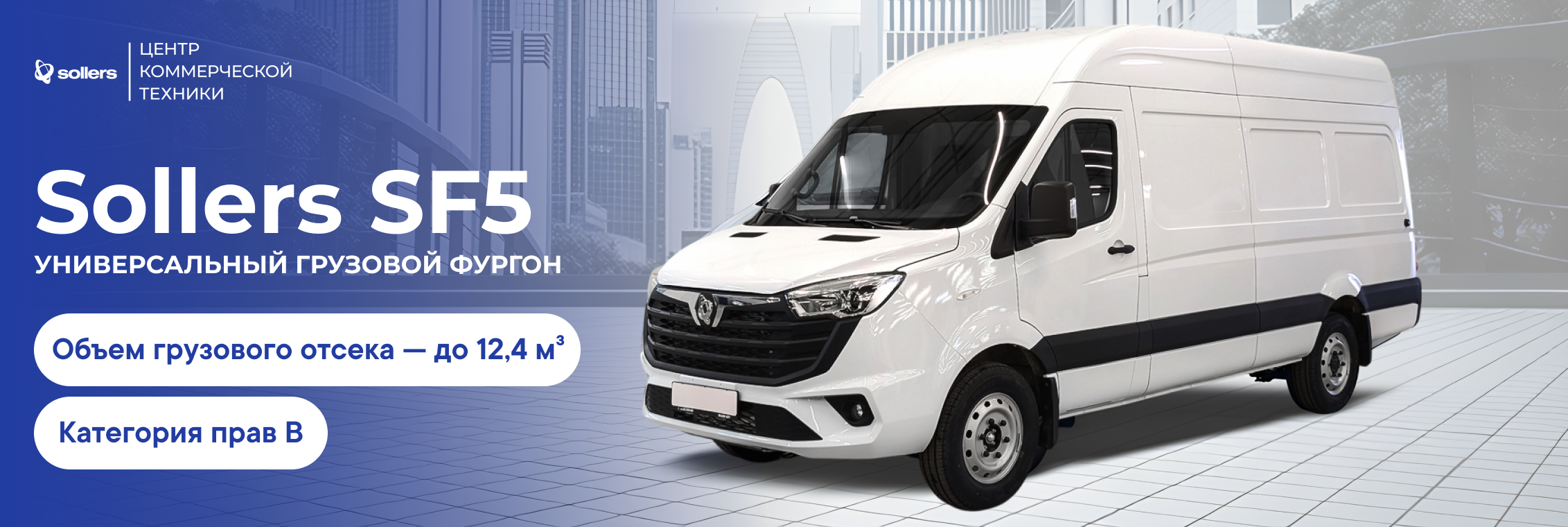 Sollers SF5 — цельнометаллический фургон, созданный для тех, кому нужен надёжный партнёр в работе. Просторный, прочный и защищённый, он сочетает в себе высокую грузоподъёмность, современную безопасность и комфорт легкового автомобиля. Отличный выбор для бизнеса, который ценит эффективность, экономичность и долговечность. Автомобиль также доступен в вариантах шасси с надстройками, автобус 15+1 место и грузопассажирская версия.